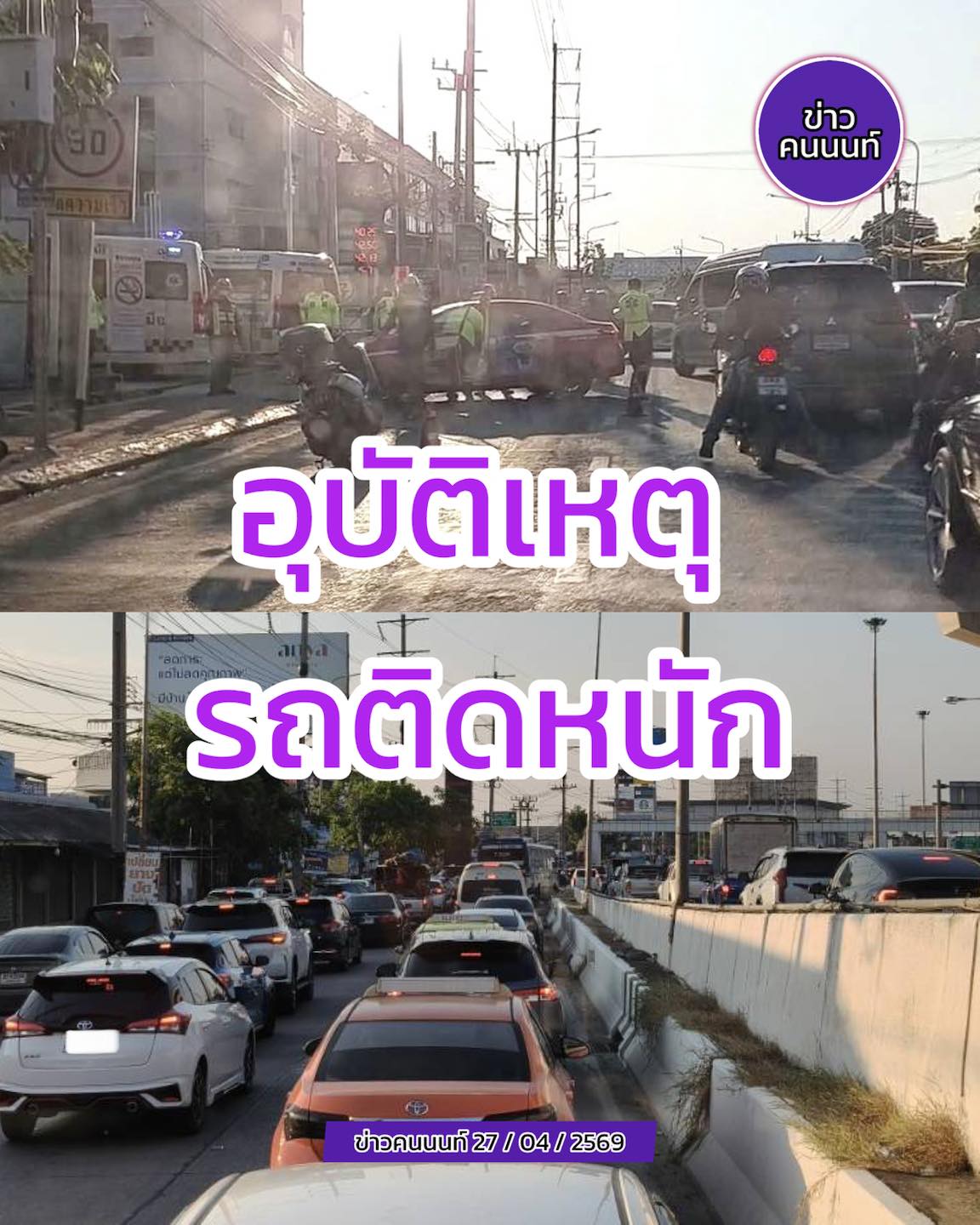 อุบัติเหตุ รถบรรทุกเล็กบรรทุกน้ำแข็ง พลิกตะแคง ถนนรัตนาธิเบศร์