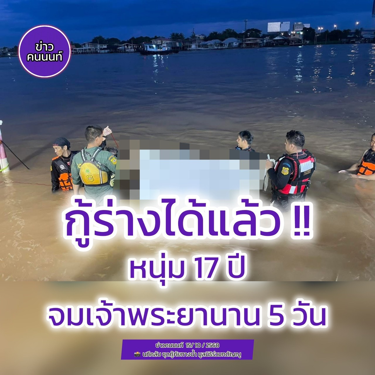 หนุ่มวัย 17 ปี จมแม่น้ำเจ้าพระยา นาน 5 วัน ร่างติดคานศาลาใต้น้ำ !