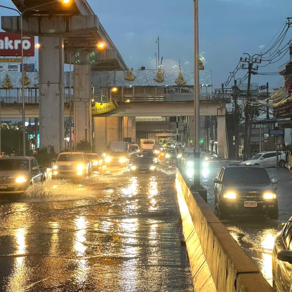 ☁️ในพื้นที่มีน้ำที่ท่วมขังผิวการจราจร รอการระบาย