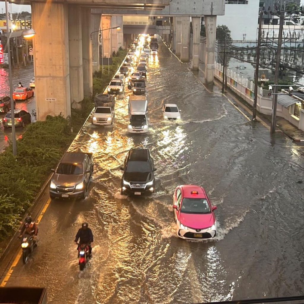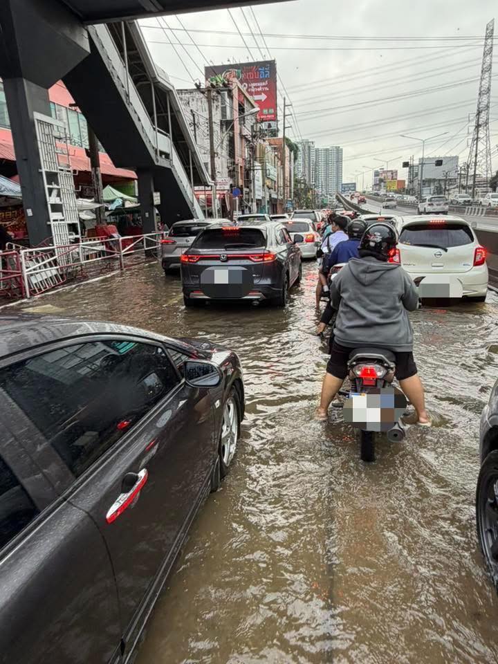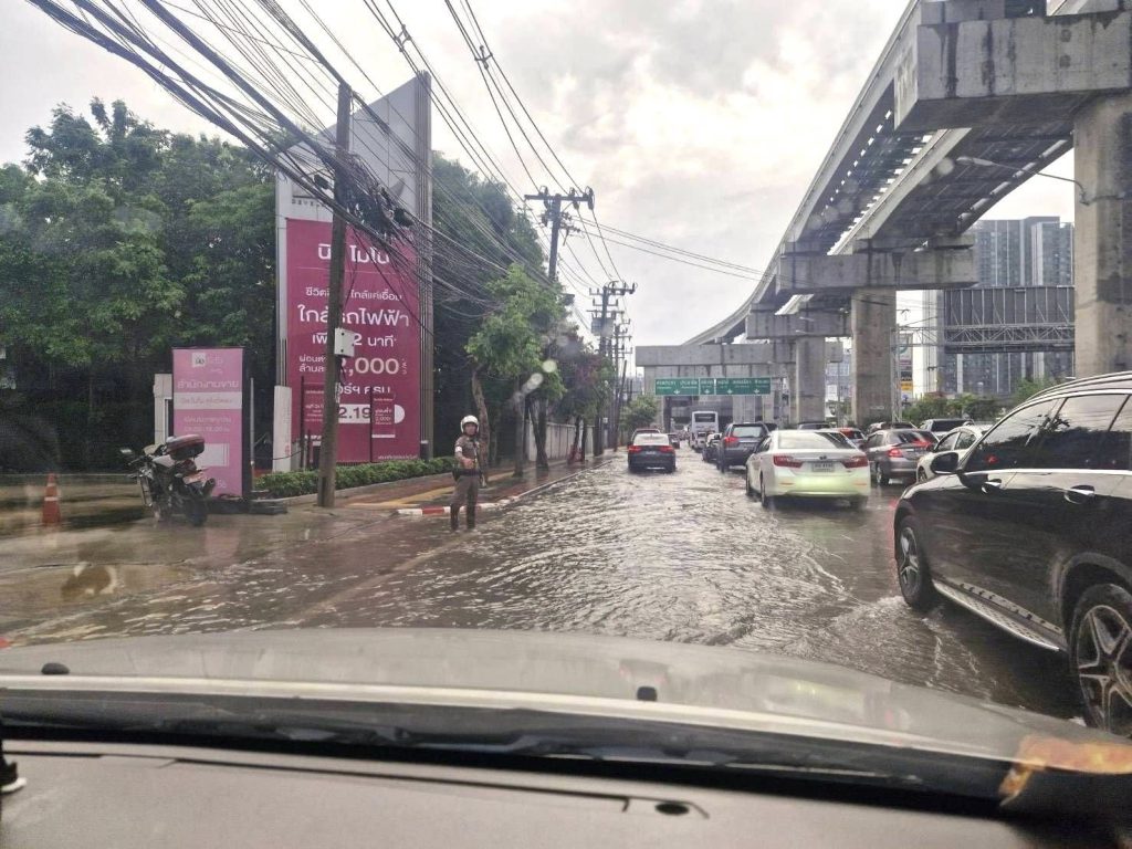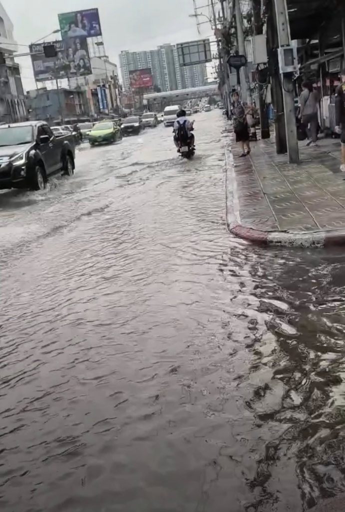☁️ในพื้นที่มีน้ำที่ท่วมขังผิวการจราจร รอการระบาย