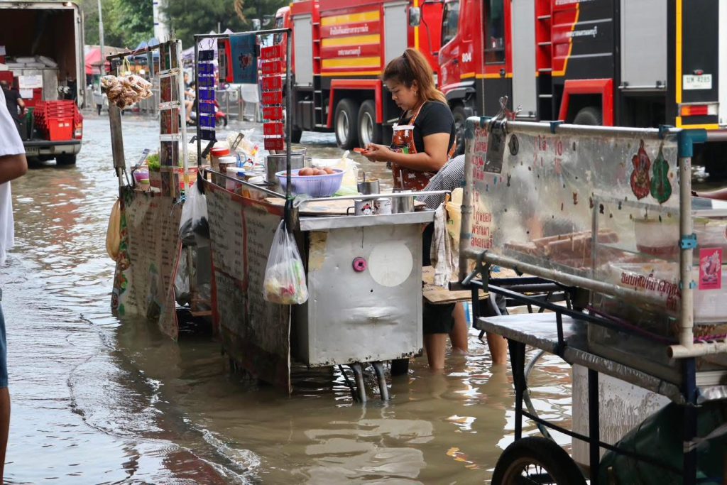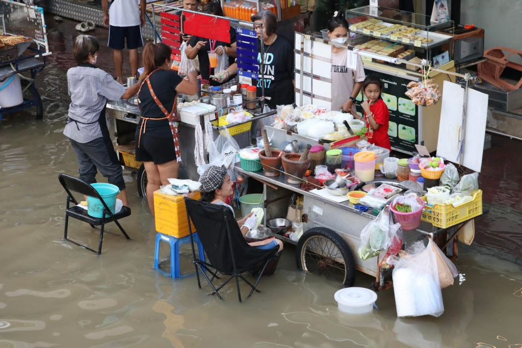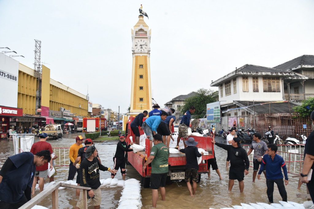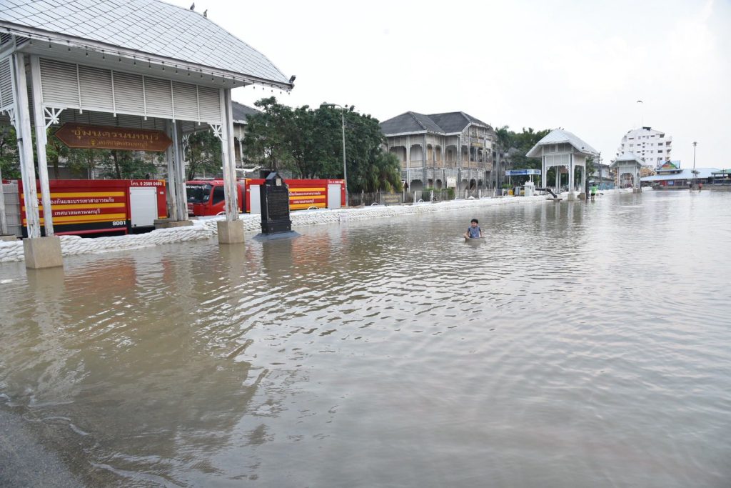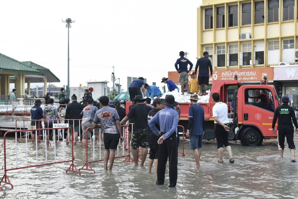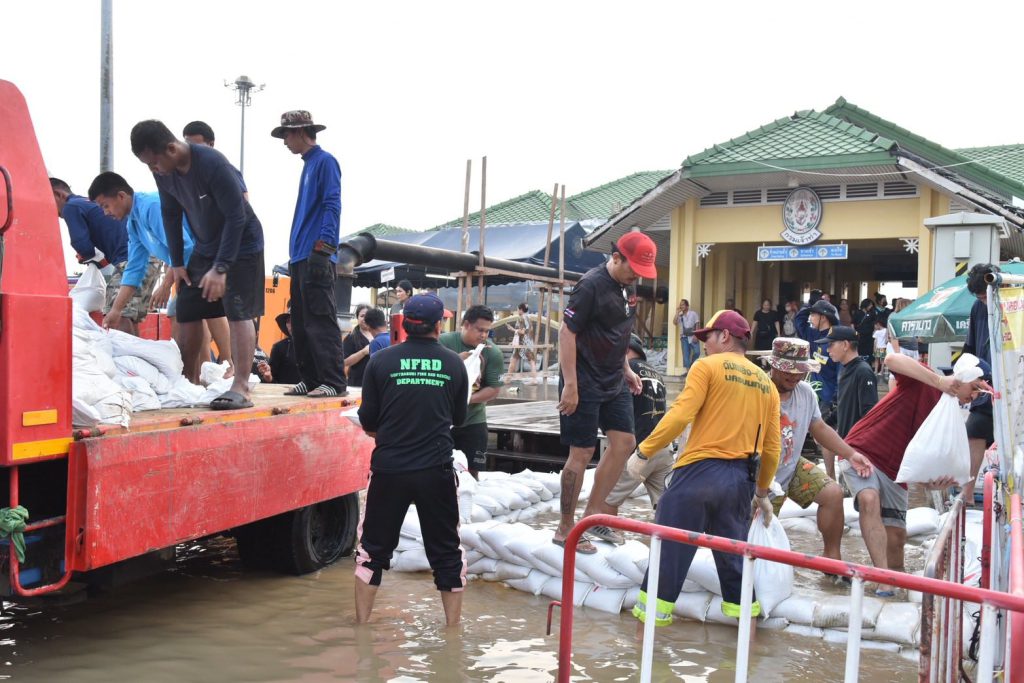 โดยได้เสริมแนวกั้นกระสอบทรายเพิ่มเติมอีกเพื่อเพิ่มความมั่นคงและป้องกันน้ำไหลเข้าพื้นที่ชุมชนใกล้เคียง