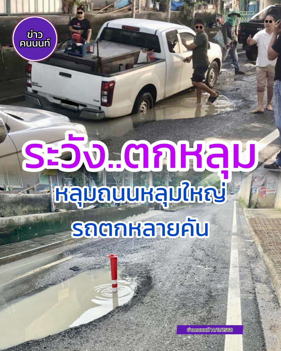 หลุมถนนหลุมใหญ่ รถตกหลุมหลายคัน