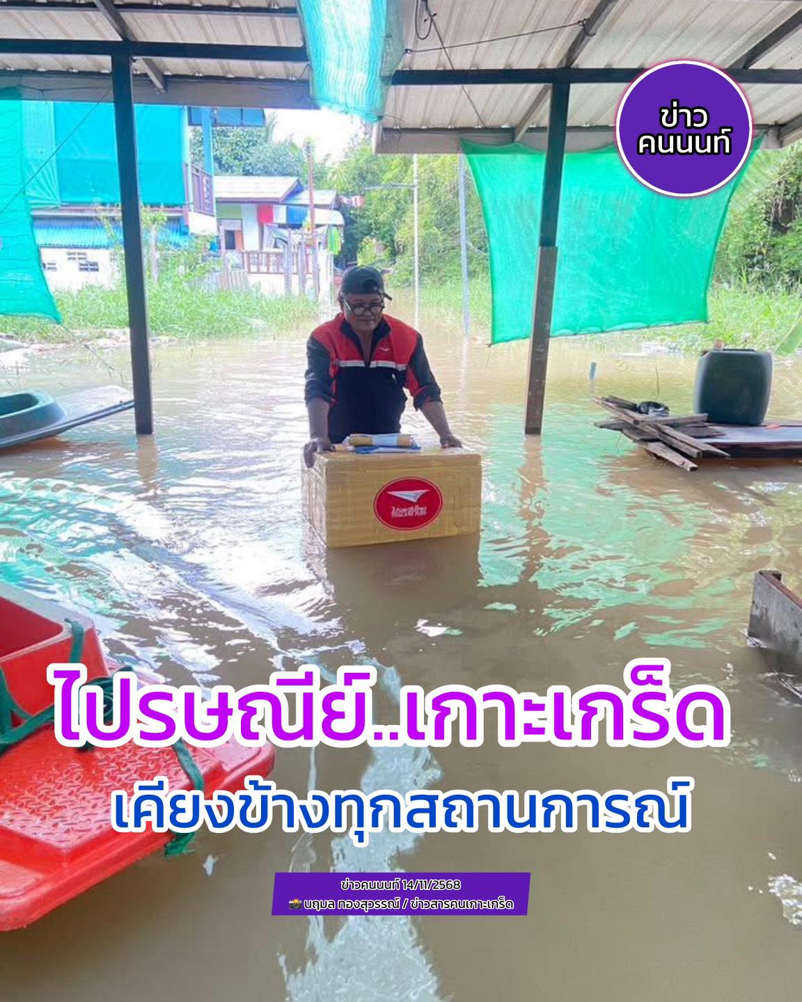 📣 ขอชื่นชมไปรษณีย์เกาะเกร็ดมากๆค่ะทุกปีจะต้องส่งของถึงบ้านน้ำท่วมสูงแค่ไหนของทุกท่านก็จะ ถึงตามกำหนดเวลานะคะแกทำอย่างนี้มาหลายปีแล้วสุดยอดจริงๆ ขอบคุณแทนชาวเกาะเกร็ดด้วยค่ะ
