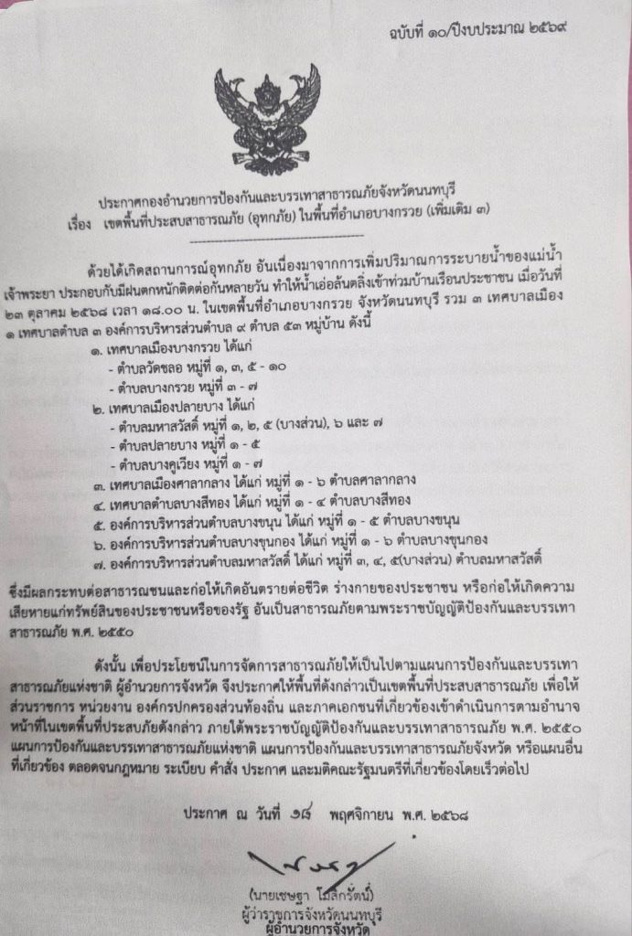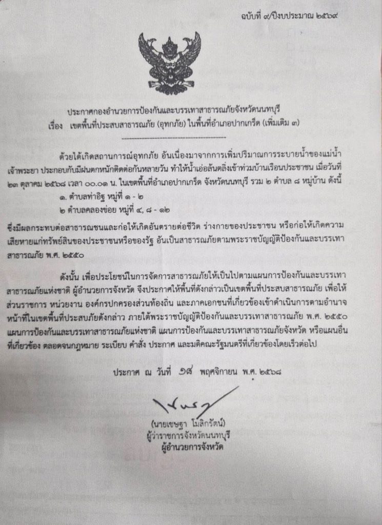 ปภ.นนท์ ประกาศ เขตพื้นที่ประสบอุทกภัยอำเภอเมืองนนทบุรี (เพิ่มเติม) #ข่าวคนนนท์ ปภ.นนท์ ประกาศ เขตพื้นที่ประสบอุทกภัยอำเภอปากเกร็ด (เพิ่มเติม) #ข่าวคนนนท์ ปภ.นนท์ ประกาศเขตพื้นที่ประสบอุทกภัยอำเภอบางกรวย (เพิ่มเติม) #ข่าวคนนนท์