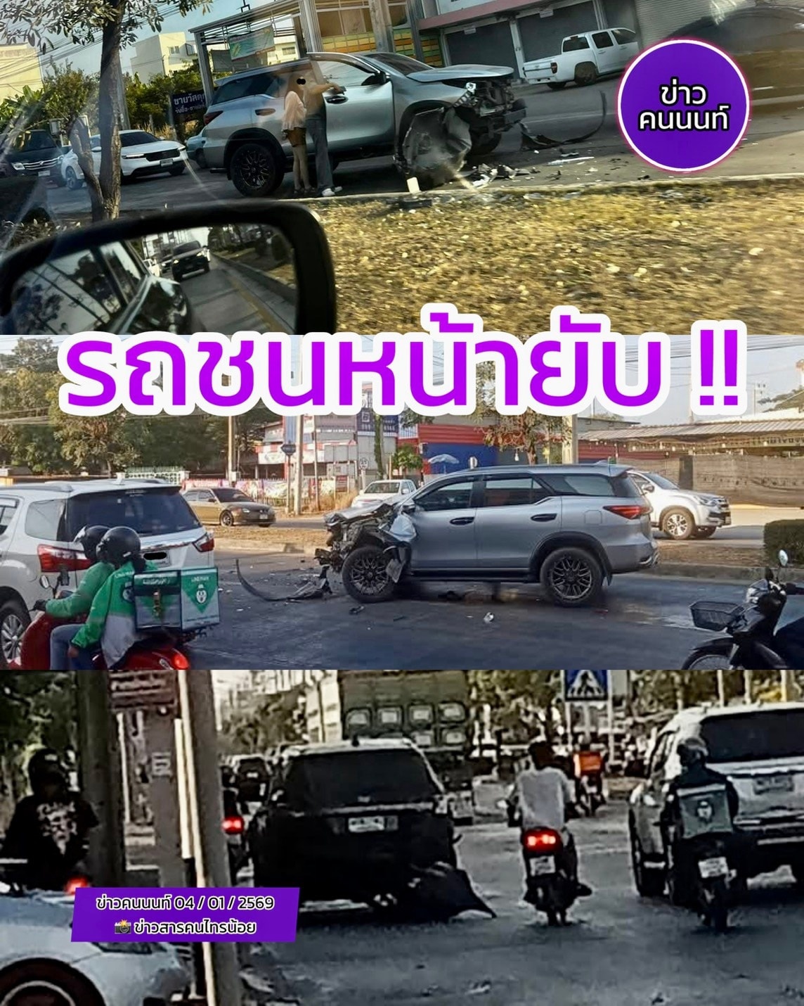 อุบัติเหตุ รถยนต์ชนกัน ส่วนฟอร์จูนเนอร์หน้ารถเสียหายยับ