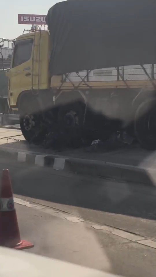 เมื่อเวลา 15:00 น. รับแจ้งอุบัติเหตุรถบรรทุกปีนเกาะกลาง