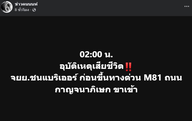 เมื่อเวลา 02:00 น. รับแจ้งอุบัติเหตุรถจักรยานยนต์ชนแบริเออร์