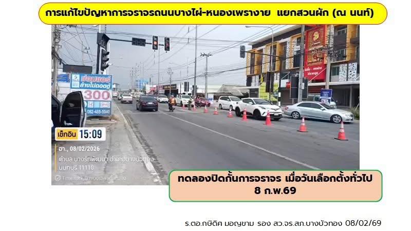 ถนนบางไผ่-หนองเพรางาย (ลาดปลาดุก) บริเวณแยก ณ นนท์ ในช่วงเวลาเร่งด่วน (ช่วงเวลา 17.00-19.00 น.) หรือช่วงมีปัญหาการจราจร