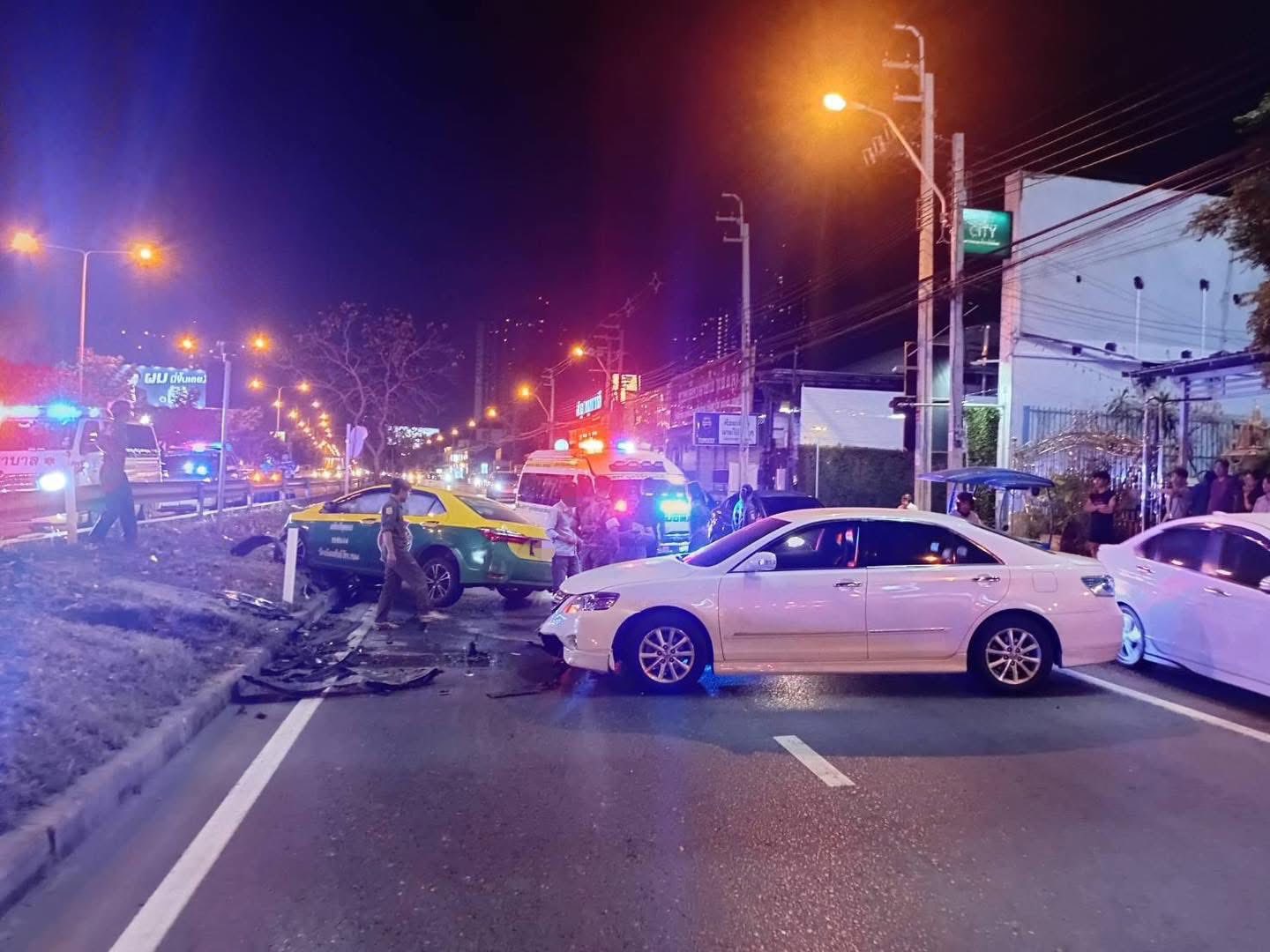 อุบัติเหตุ รถเก๋งกับรถแท็กซี่ ถนนนครอินทร์ ขาออก จากแยกติวานนท์ >สะพานพระราม5 ใกล้เคียงหน้าร้านไก่ย่างโคราช กีด ขวางทุกช่องทางของทางขนาน 22:30 น. อยู่ระหว่างดำเนินการ.