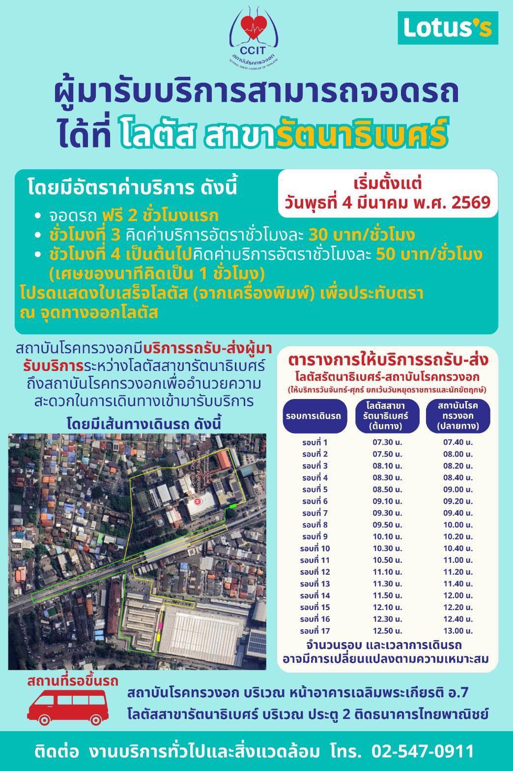 ผู้มารับบริการที่ “สถาบันโรคทรวงอก” สามารถจอดรถได้ที่ “โลตัส สาขารัตนาธิเบศร์” ![]()