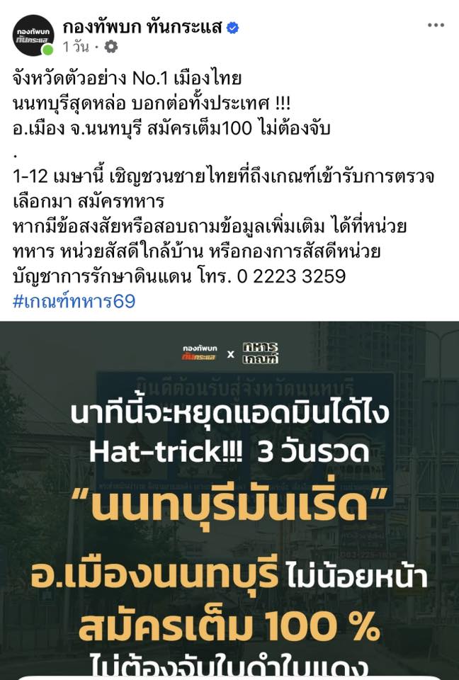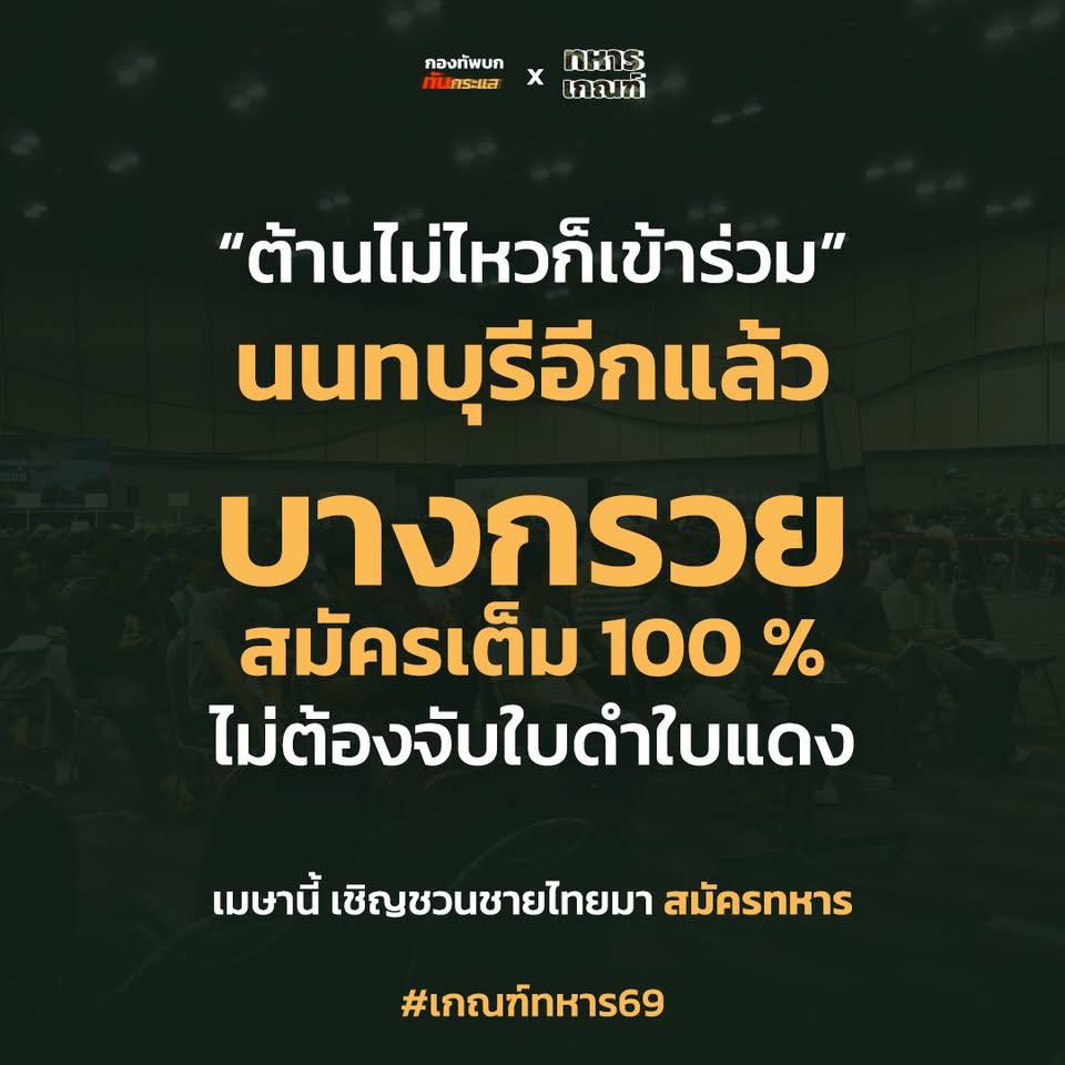 จังหวัดตัวอย่างเมืองไทย🪖 #เกณฑ์ทหาร สมัครใจเต็ม 100 ไม่ต้องจับ (วันแรก)📍อำเภอ #เมืองนนท์ #บางกรวย #ไทรน้อย 🪖
