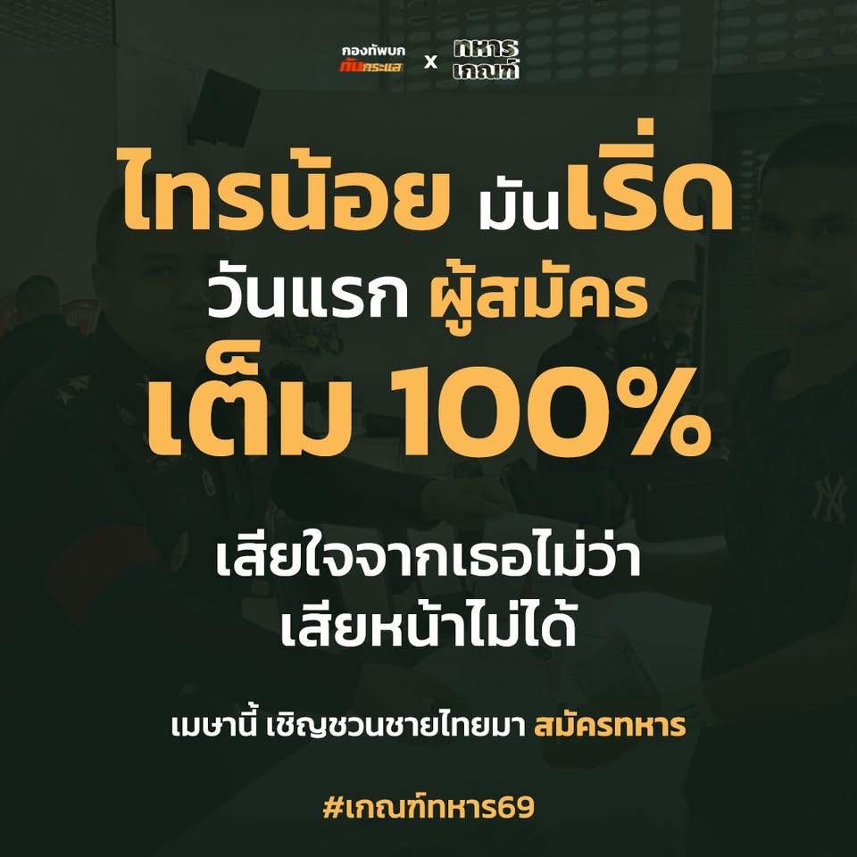 1-12 เมษานี้ เชิญชวนชายไทยที่ถึงเกณฑ์เข้ารับการตรวจเลือกมา สมัครทหาร