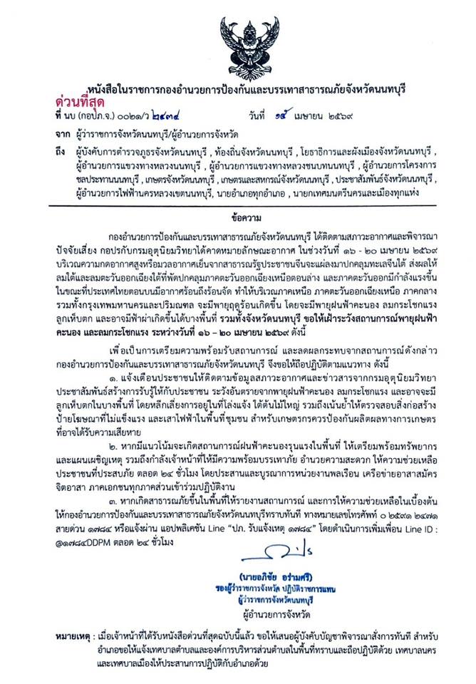 2. ปภ.นนทบุรี เตือนเฝ้าระวัง พายุฝนฟ้าคะนอง ลมกระโชกแรง