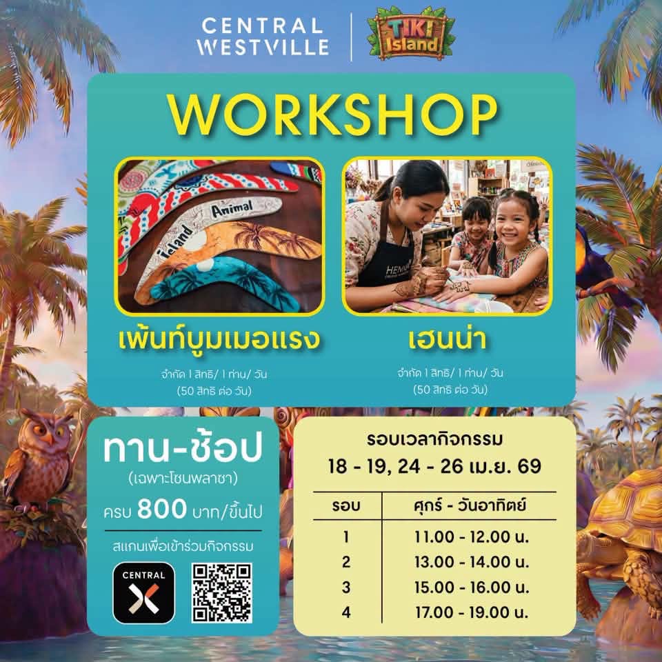 มาจ้าๆ น้องๆหนูๆ ตะลุยเกาะมหัศจรรย์ กับ Tiki island เปิดโลกผจญภัย ใกล้ชิดกับน้องสัตว์หาชมยาก ทั้งนกแก้วใหญ่มาคอว์ นกฮูกยักษ์ นกทูแคน นกแก้วซันคอนัวร์ นกเรียม คาปิบาร่า, ม้าแคระ แพะพิคมี่ สัตว์เลื้อยคลาน งู กิ้งก่า เต่าซูคาต้า ม้าแคระ และกิจกรรมอีกมากมายภายในงาน Workshop Boomerang ตกแต่ง D.I.Y บูมเมอแรง Workshop Henna วาดลวดลาย เพ้นท์เฮนน่า เก๋ๆ ATV Kids Adventure! ขี่ ATV ตะลุยเกาะมหัศจรรย์ พิเศษ ร่วมใกล้ชิด ถ่ายรูปเก็บโมเมนต์ประทับใจ Miss Aloha Hula วันนี้ – 28 เมษานี้ ที่ #CentralWestville ลานกิจกรรม ชั้น G (หน้าร้านโรงสี โภชนา) ดูรายละเอียดเพิ่มเติมที่คอมเม้นต์จ้า Central Westville #ข่าวคนนนท์ #อีเวนต์นนทบุรี #เซ็นทรัลเวสต์วิลล์ #ราชพฤกษ์ #นนทบุรี #จังหวัดนนทบุรี .