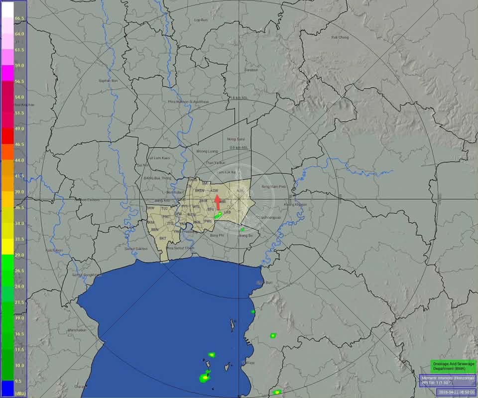 วันที่ 23 เมษายน 2569 เวลา 10.45 น. / พื้นที่ กทม. ฝนเล็กน้อยเขตคลองสามวา เคลื่อนตัวทิศเหนือ แนวโน้มคงที่